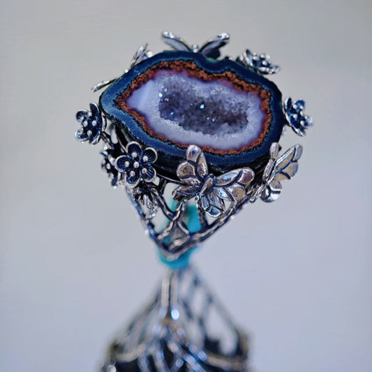 Butterfly Geode Agate Druzy Ring – 925 Sterling Silver, Handcrafted, Unique Gemstone Jewelry By LANYI