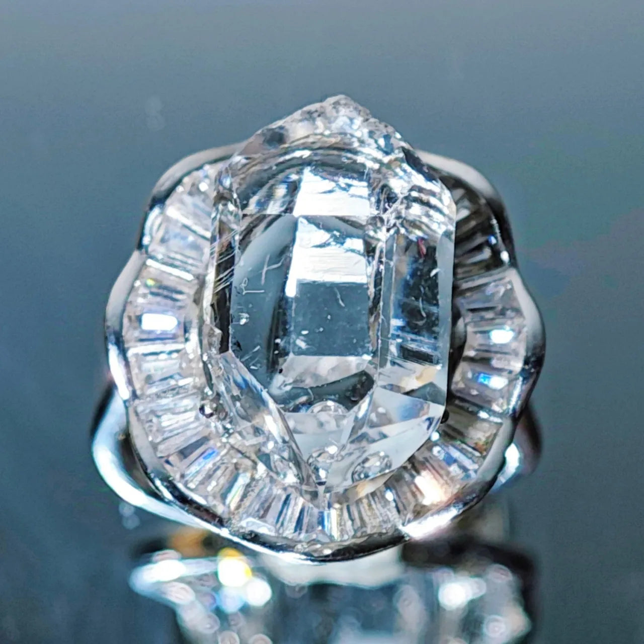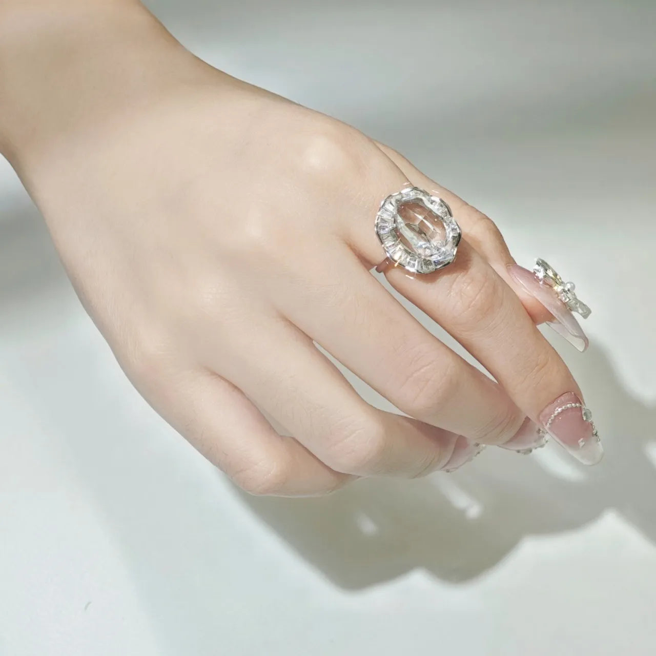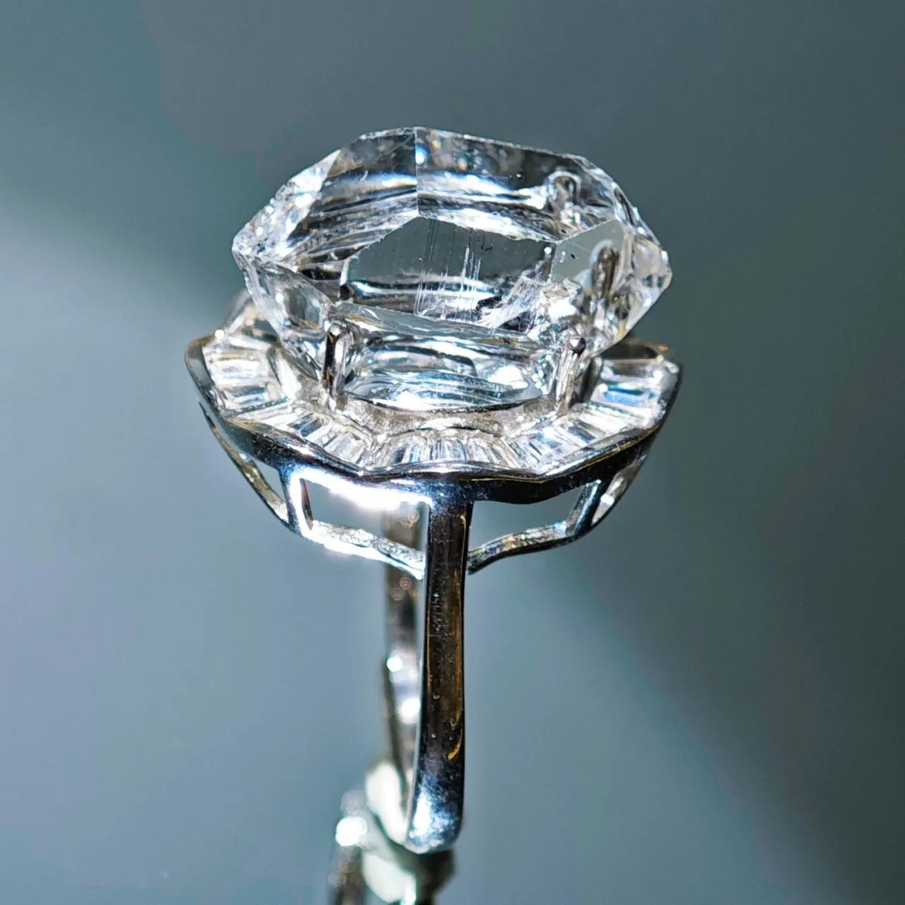 Material: Natural white crystal (center stone), 925 sterling silver (band).