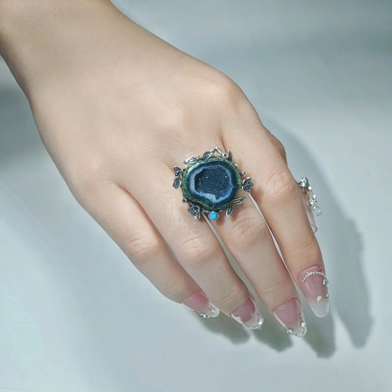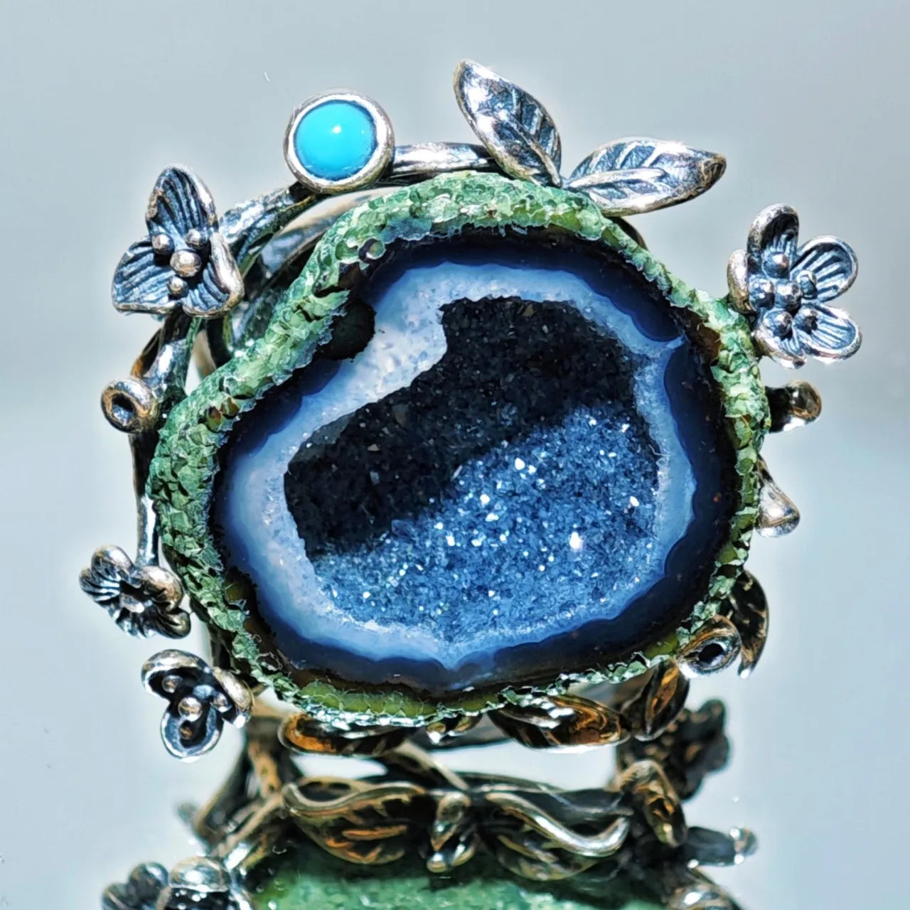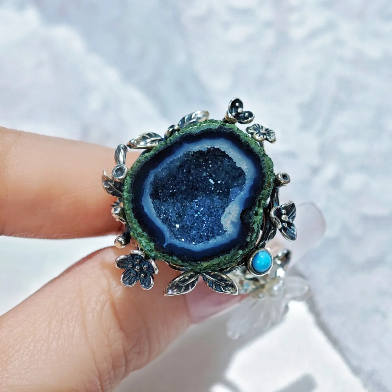 Material: Mexican natural geode, natural agate, 925 sterling silver.